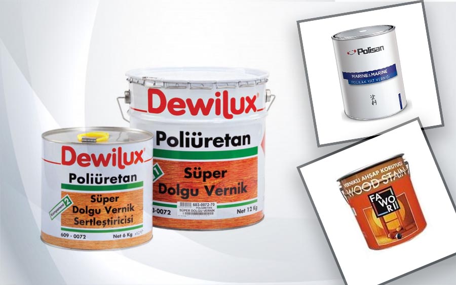 Vernikler sentetik, selülozik, poliüretan çeşitleri, ahşap koruyucular.